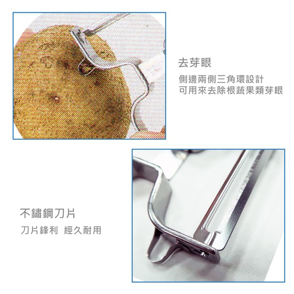 ●去芽/削皮雙功能 ●整支不銹鋼材質 ●易清洗,乾淨衛生