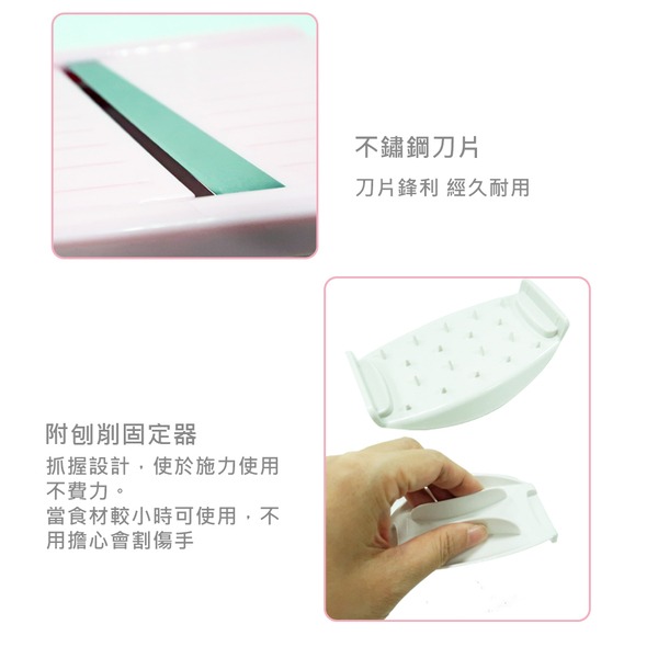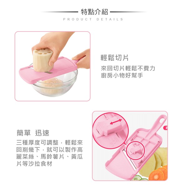 ●三段式厚度調整功能 ●可依照料理需求準確切割 ●料理蔬菜更安全便利