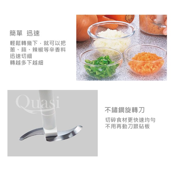 ●迷巧精巧,使用不受限,底部止滑墊設計,轉轉轉瞬間食材變碎丁
