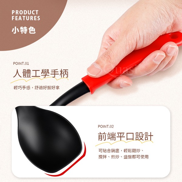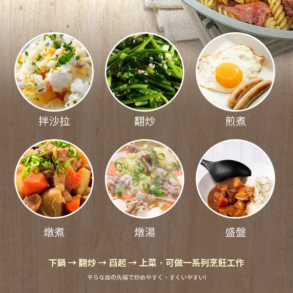 ●人體工學設計,舒適好握 ●輕鬆翻炒、攪拌、煎炒、盛盤都可使用 ●燉飯.粥飯等料理,便於盛裝 ●下廚料理享用美食的好幫手