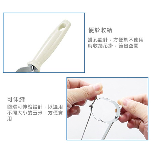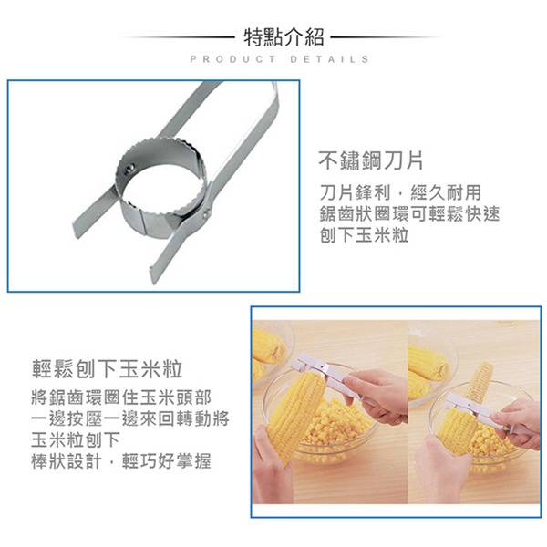 ●輕鬆取下玉米顆粒 ●生熟玉米均可使用 ●簡單調理食物的小幫手