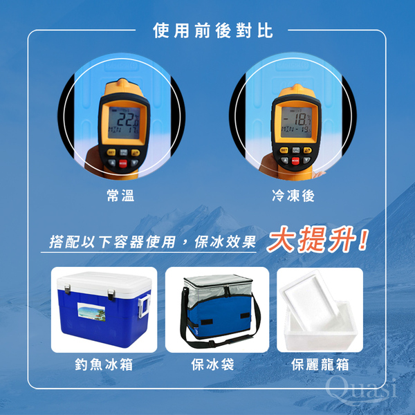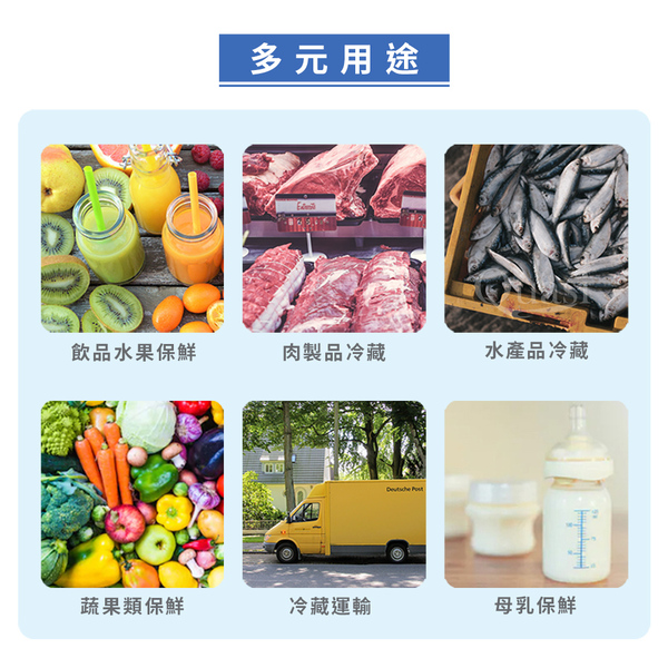 ●適合各種冷藏箱和保冷袋 ●一體成型製成,液體不外漏 ●可延長外出時冷藏箱