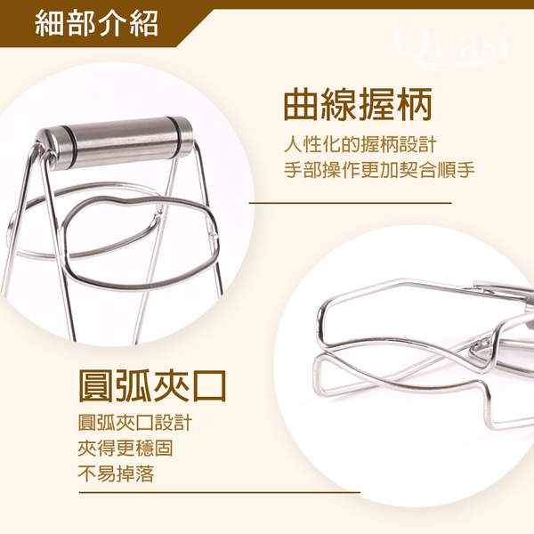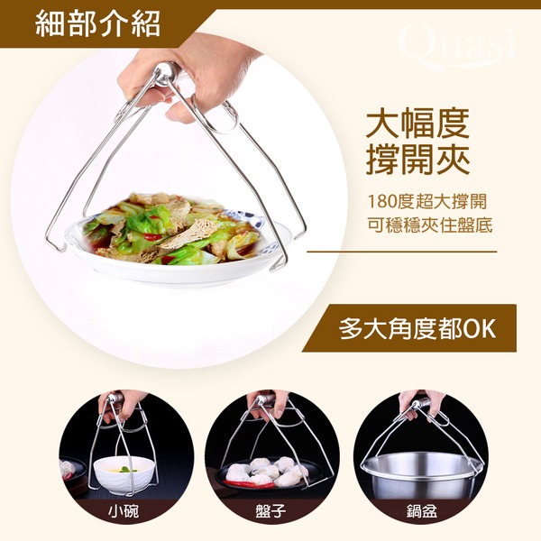 ●加大夾口設計 ●加粗線材更耐用 ●輕鬆夾取熱燙的鍋碗盤 ●弧形夾口夾得更穏