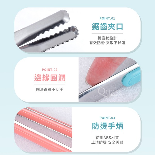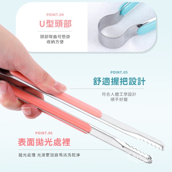 ●鋸齒夾口設計,夾取不掉落 ●粉漾手柄,順手好握 ●料理分裝,燒烤翻面更便捷, 居家商用,露營野炊皆適用