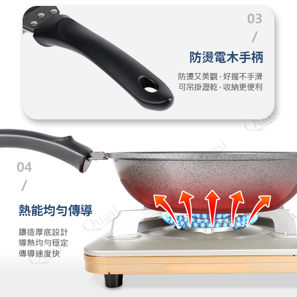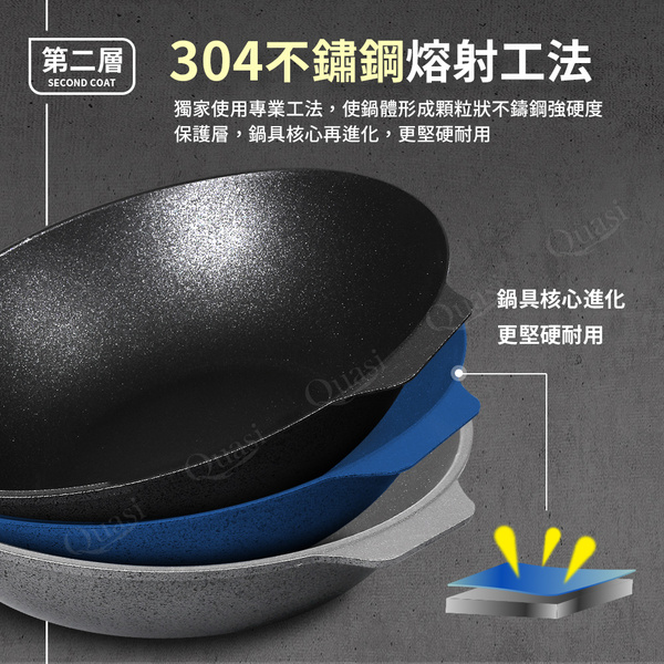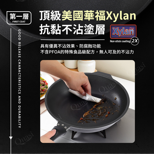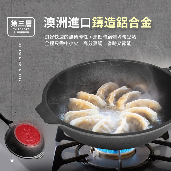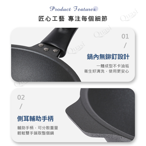 ●澳洲進口重力鑄造合金.純手工製程.經久耐用 ●美國華福Xylan抗黏塗層.不沾效果佳 ●厚鍋底+不鏽鋼噴塗工藝更耐磨.導熱快速均勻 ●鍋內無鉚釘設計.不藏汙納垢.好清洗