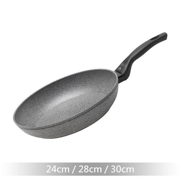 規格:Ø24cmxH5.5cm-24cm 規格:Ø28cmxH5.5cm-28cm 規格:Ø30cmxH5.5cm-30cm 材質:本體-鋁合金/把手-電木,內層-Quantanium鈦元素不沾處理,外層-矽樹脂處理 產地:義大利