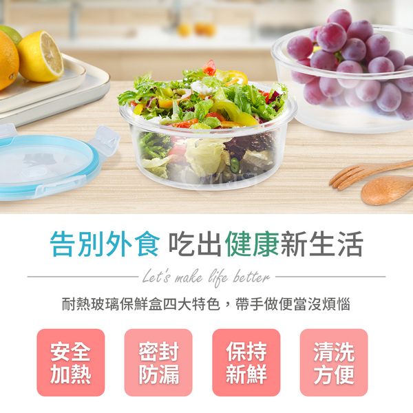 ●耐熱玻璃材質.便於各式料理 ●密封保鮮效果佳.存放各式食材 ●堆疊輕鬆.可使廚櫃保持整潔