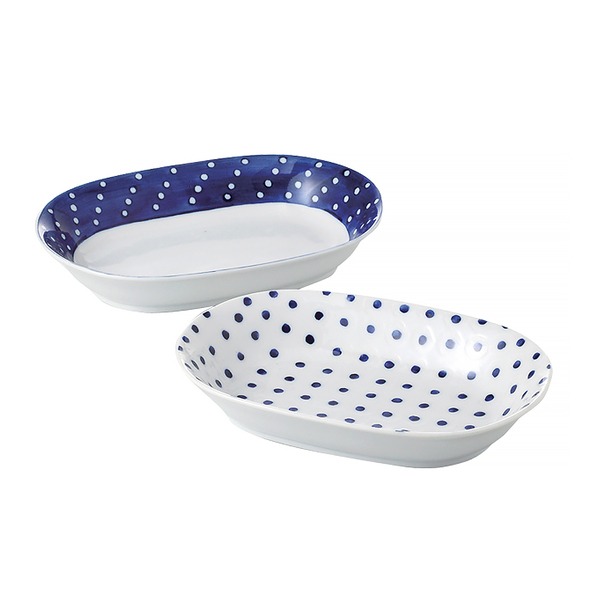 【西海陶器】藍丸紋2入橢圓盤組(日本美濃燒)