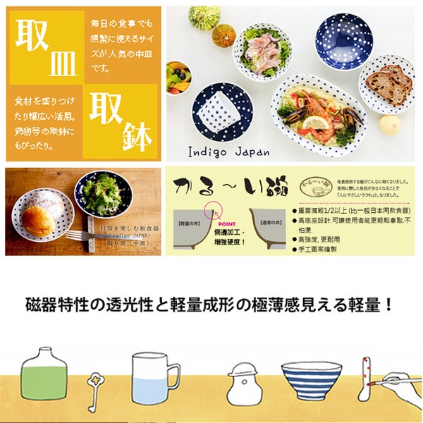 ●輕量化比一般陶瓷更輕,白藍純粹水玉設計