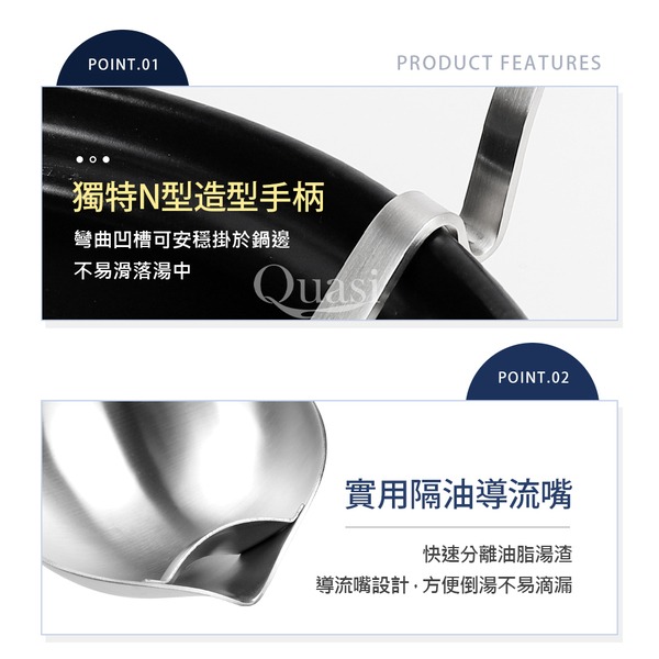 ●獨特N型彎曲凹槽手柄,安穩掛於鍋邊,不易滑落湯中 ●細緻簍空孔洞,便捷過濾湯汁,撈取湯料 ●全304不鏽鋼材質,耐高溫耐用易清洗,可吊掛收納 ●輕鬆享用鍋物,餐桌上必備良品