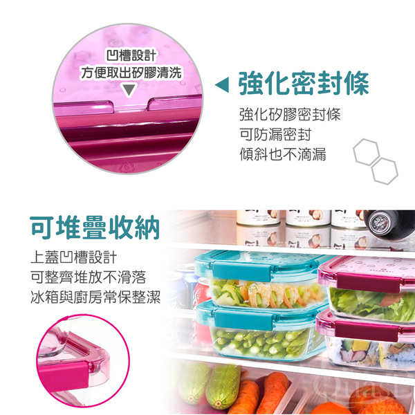 ●保鮮效果佳,適合存放各類食物 ●易清洗,不易殘留異味色漬 ●耐衝擊安全耐用 ●上蓋環扣設計,好密封不易外漏 ●堆疊輕鬆,可使冰箱與廚房保持整潔