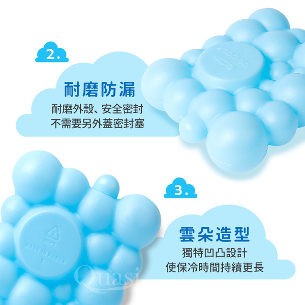 ●延長保冷時效,烤肉/露營/海釣等戶外休閒活動皆適宜 ●可搭配保冷提袋或冷藏箱及冰桶,保鮮保冷效果更佳 ●亦可搭配水冷扇使用避暑降溫 ●雲朵造型,增加凹凸感延長了保冰效果