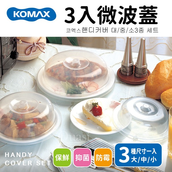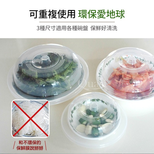●有效防止食材加熱時不會亂噴到微波爐內壁 ●減少保鮮膜使用.生活更環保 ●3種尺寸適用各種碗盤 ●有效防止灰塵.小蟲進入