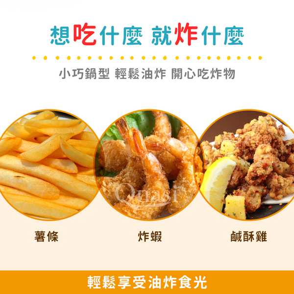 ●鍋身輕巧尺寸,設計新穎,一人輕鬆油炸,開心吃炸物