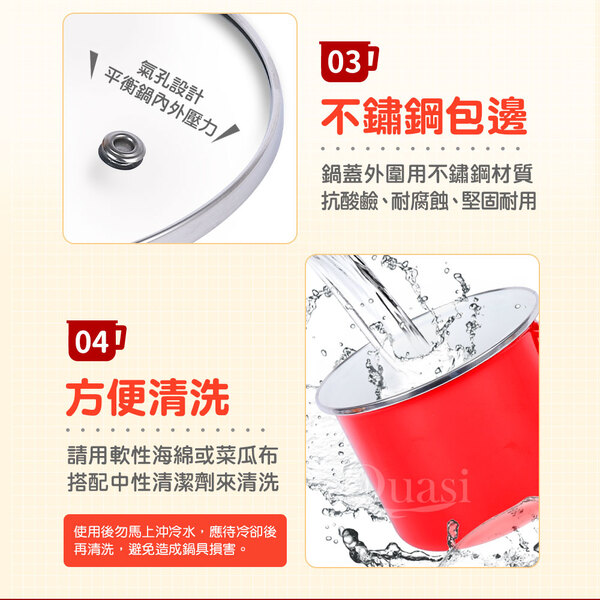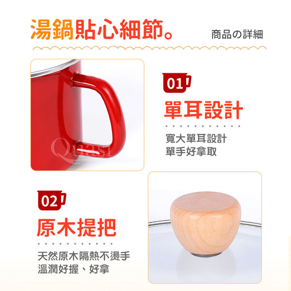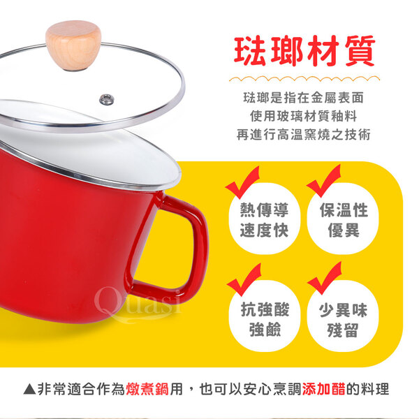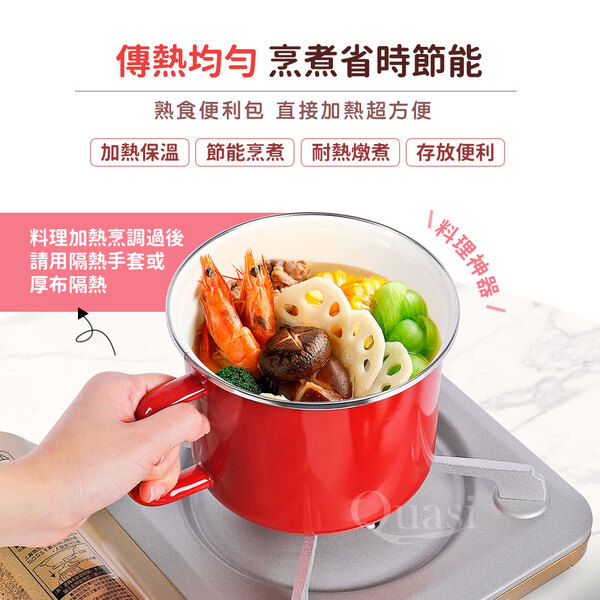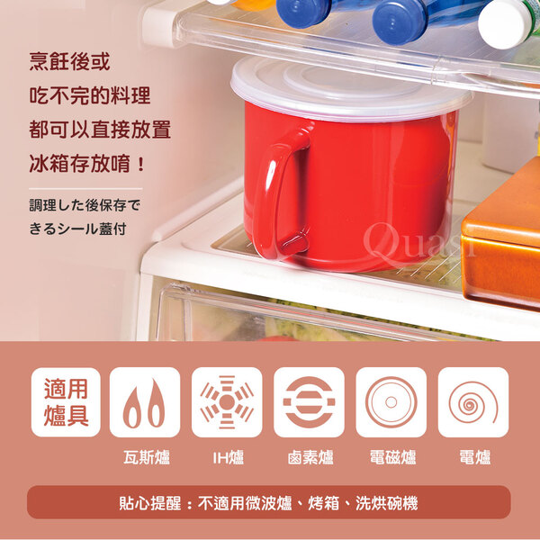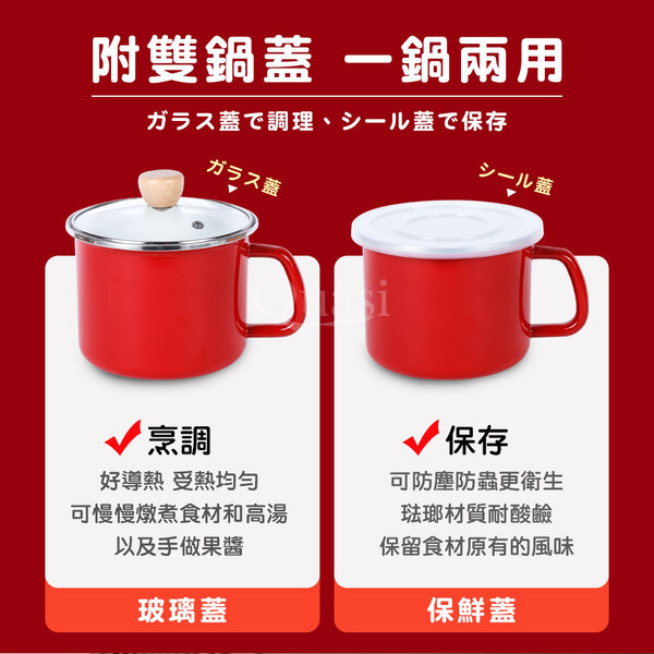 ●傳熱均勻,烹煮省時節能 ●琺瑯表面處理,易洗耐酸鹼,少異味殘留 ●烹煮用上蓋+存放保鮮蓋,雙蓋雙用 ●小巧深款鍋型,效能超值