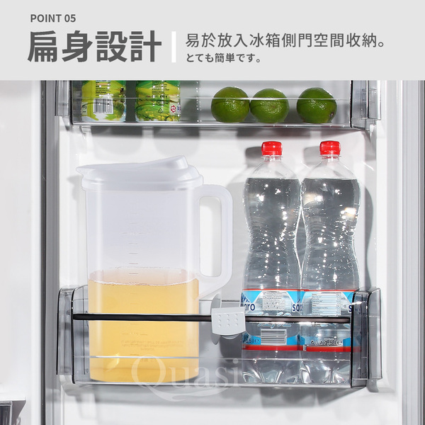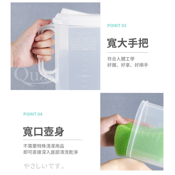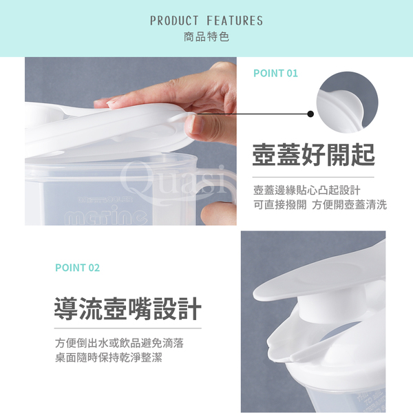 ●一指彈蓋設計,單手即可輕鬆倒出 ●一體成形上蓋+寬口壺身設計 ●不藏污好清洗 ●沁涼飲品,與親友分享