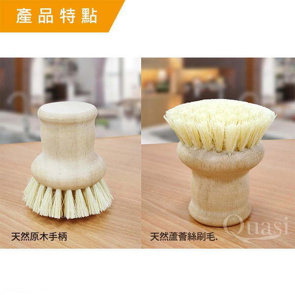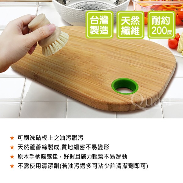 ●天然蘆薈絲製成,質地細密不易變形 ●可刷洗砧板上之油污髒污 ●不需要使用清潔劑若油污過多可沾少許清潔劑即可 ●木手柄刷洗輕鬆不易滑動