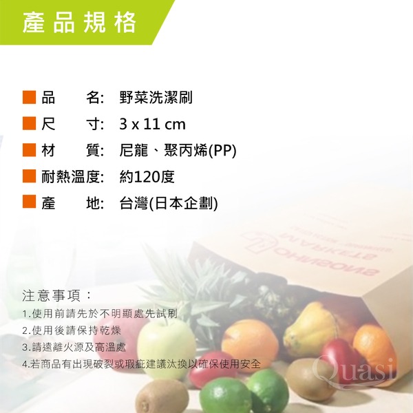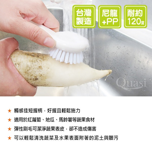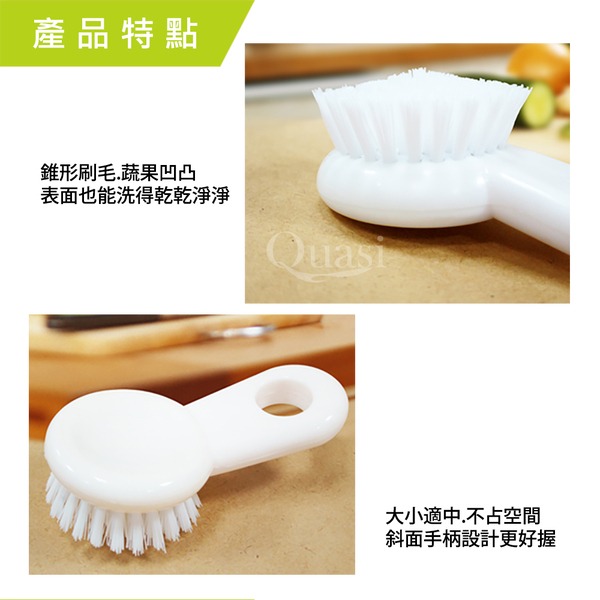 ●可以輕鬆清洗蔬菜及水果表面附著的泥土與髒污 ●手掌大小設計,好握好刷洗,輕鬆不費力