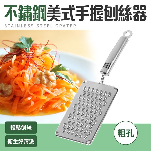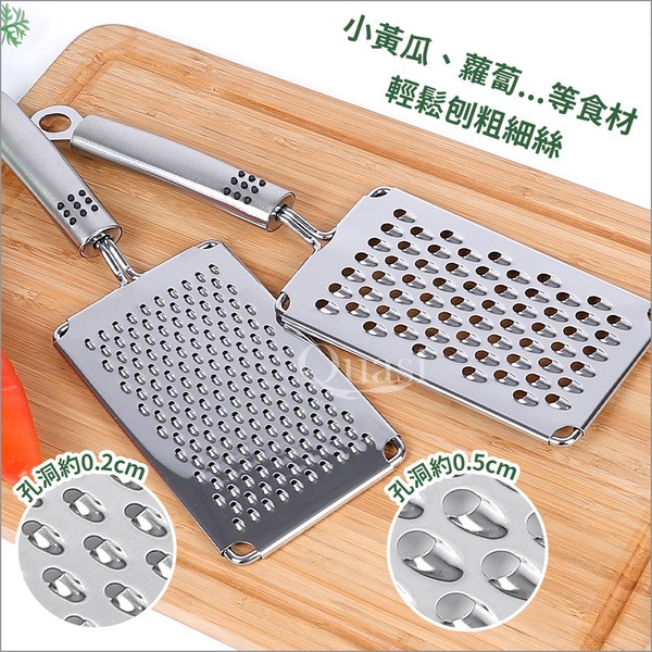 ●孔洞約0.5cm,小黃瓜、蘿蔔等輕鬆刨粗絲 ●刀刃不鏽鋼材質衛生好清洗 ●人體工學設計,好拿好使用 ●可吊掛收納,不占空間
