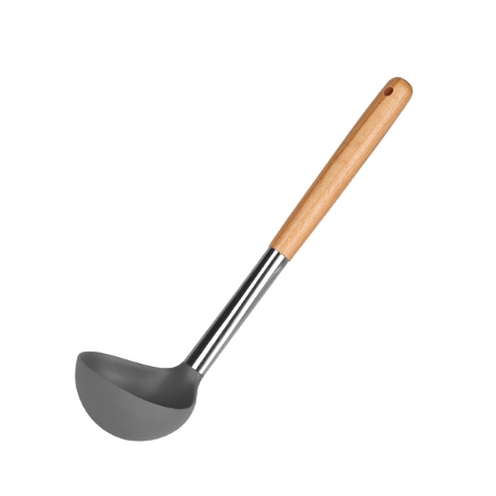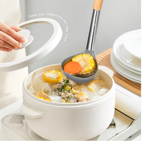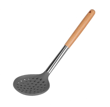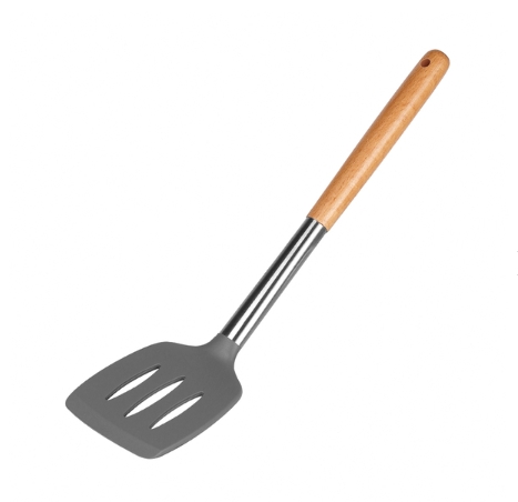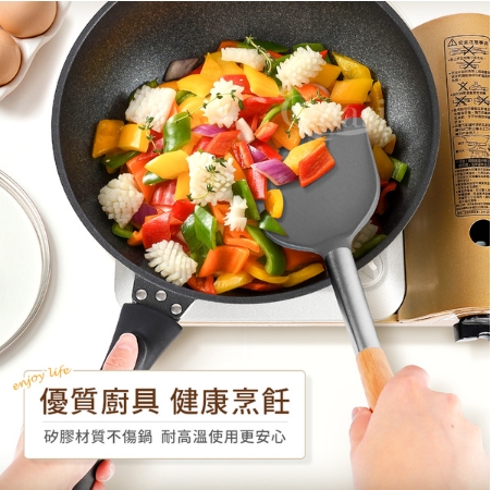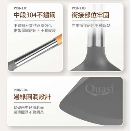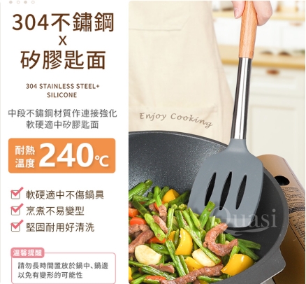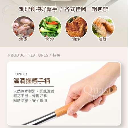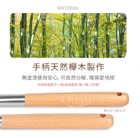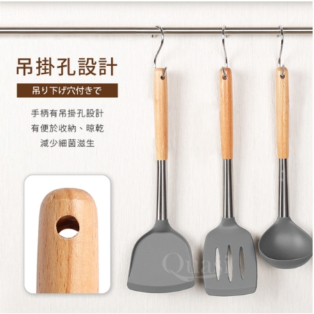●天然原木手柄,質感圓潤,輕巧手感易握 ●中段不鏽鋼異材質作連接強化 ●軟硬適中矽膠匙面,不傷鍋具,耐用好清洗 ●可吊掛晾乾收納不佔空間,調理食物好幫手