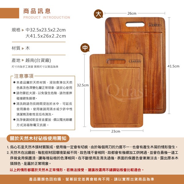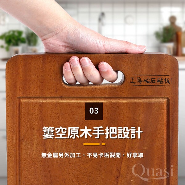 ●採用天然高級烏心實木整切製作而 ●質地堅密,不易龜裂 ●剁切不容易產生碎屑,經久耐用