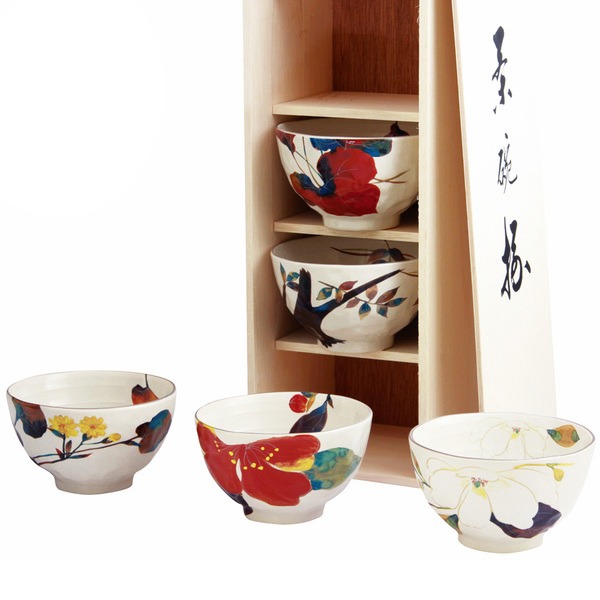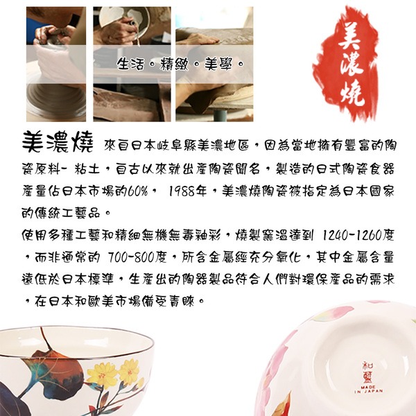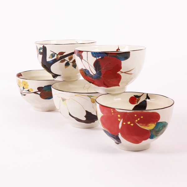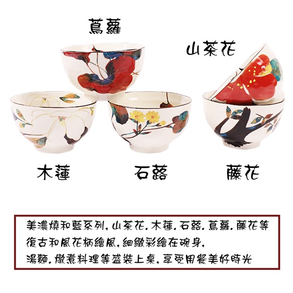 ●美濃燒和藍系列 ●山茶花.木蓮.石蕗.蔦蘿.藤花等細緻彩繪在碗身 ●非常個性又令人陶醉的5碗,送人自用兩相宜