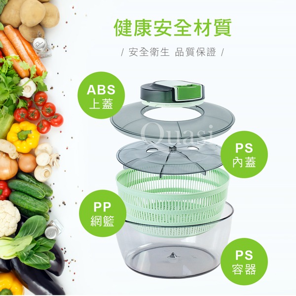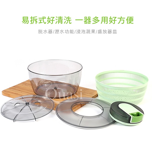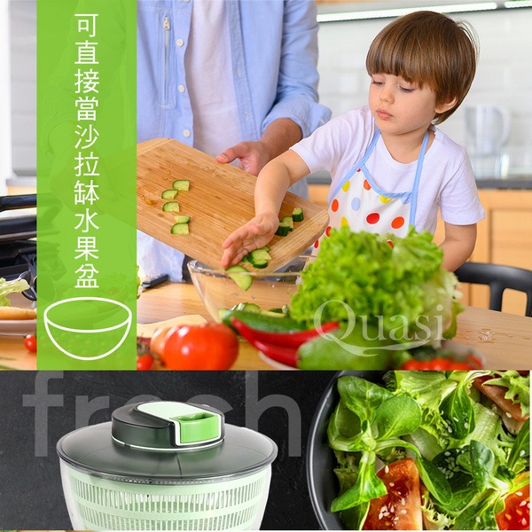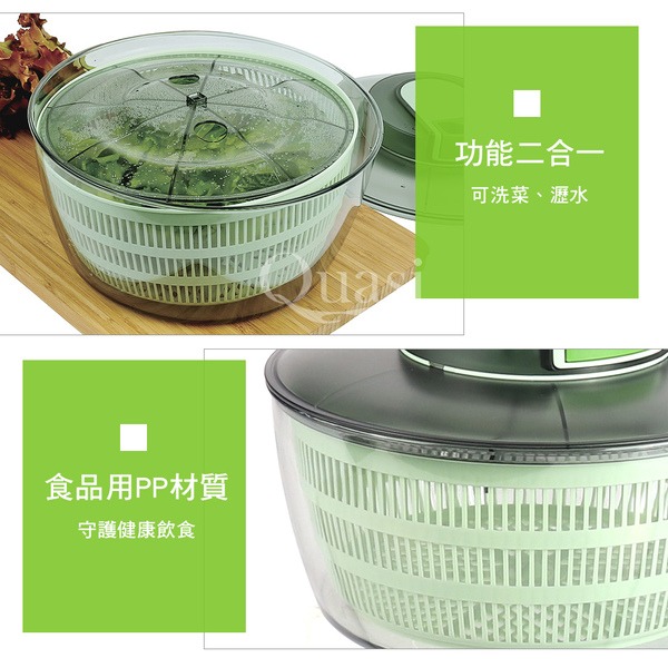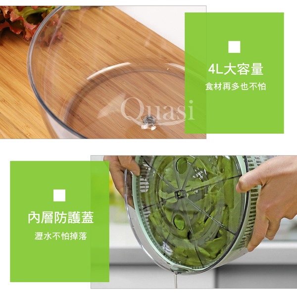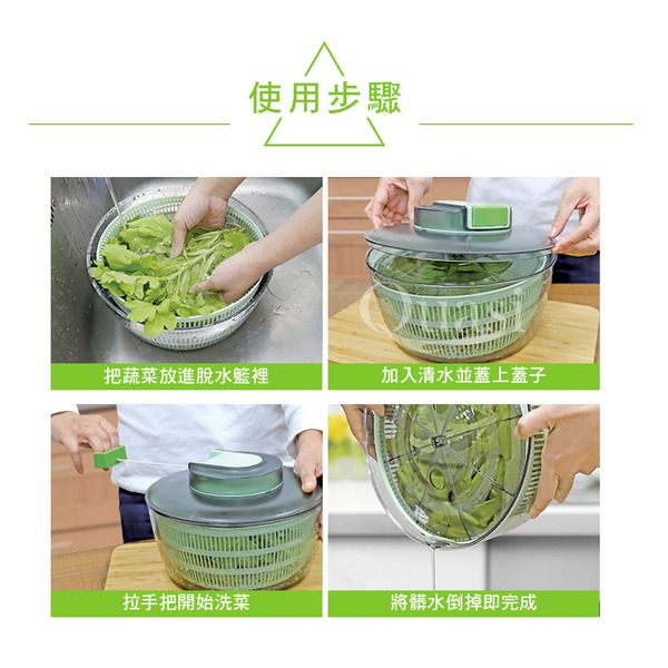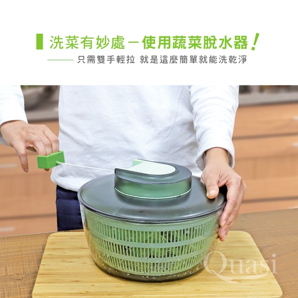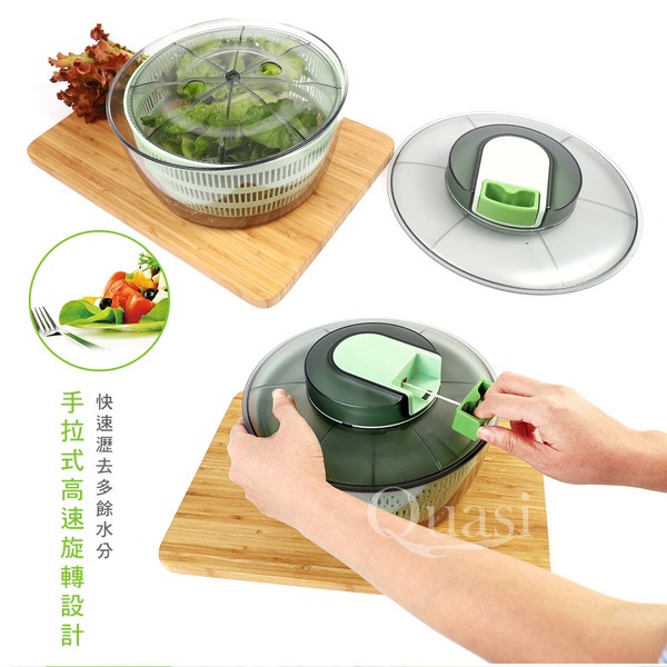 ●手拉式高速旋轉設計,快速有效 ●4L大容量透明容器可當沙拉缽 ●活動式過濾籃,可沖洗水果