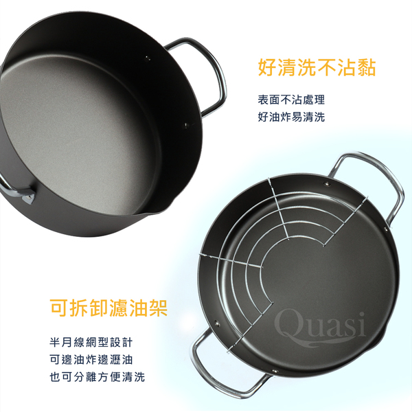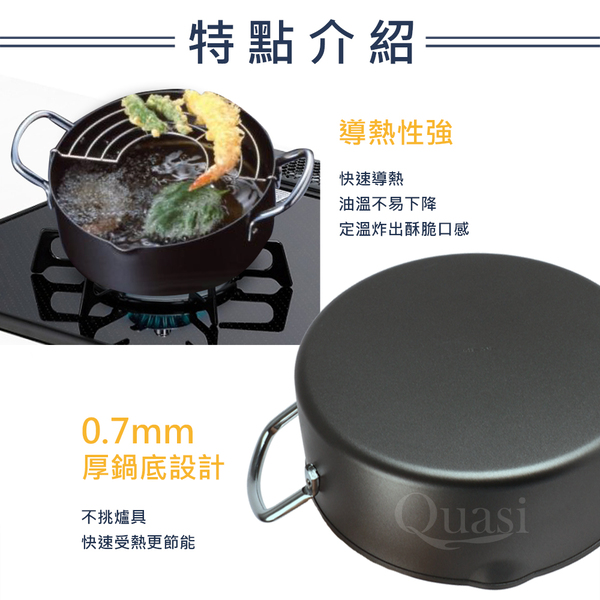 ●0.7mm厚底設計,導熱性好並散熱慢 ●油溫不易下降,定溫炸出酥脆 ●附半月線網設計,瀝油好方便 ●可愛小巧,收納方便不佔空間
