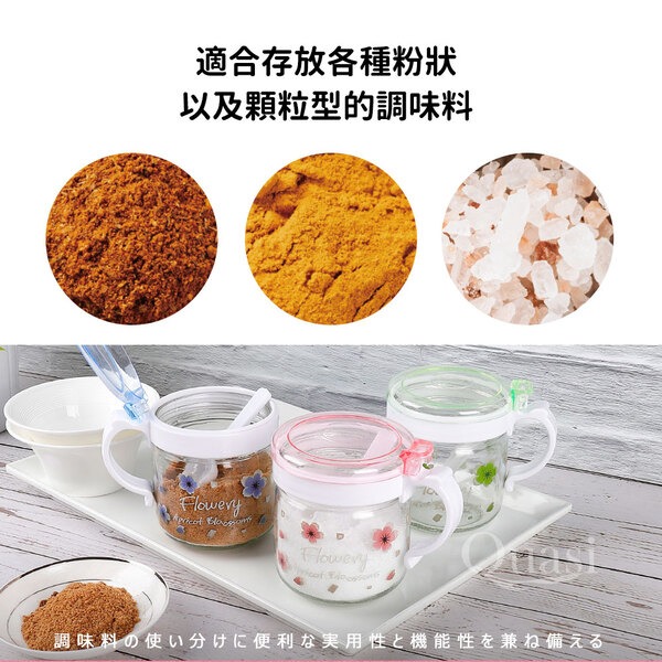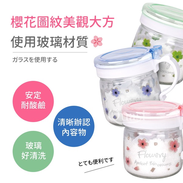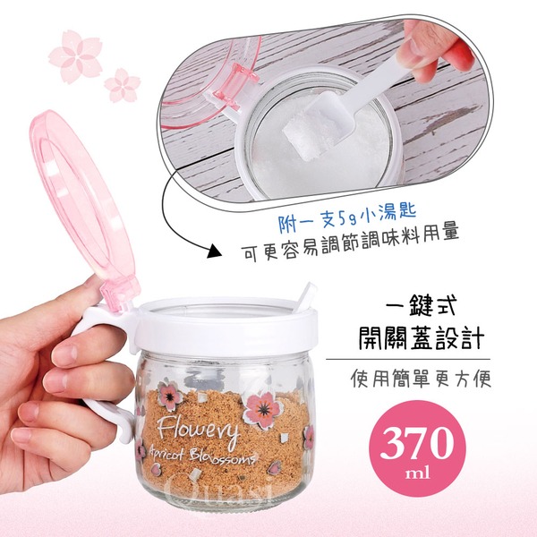 ●櫻花圖紋美觀大方,玻璃材質安定耐酸鹼 ●透明玻璃瓶身,可清晰辦認內容物,易清洗 ●一鍵式開關蓋設計,使用簡單更方便 ●附一支5g小湯匙,可更容易調節調味料用量 ●適合存放各種粉狀或是顆粒型的調味料