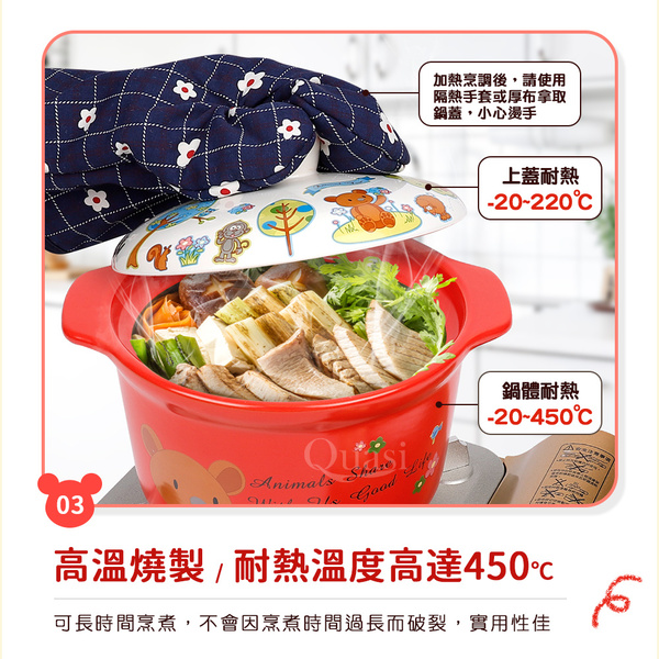 規格:約21×27.5×17.5cm (含手柄.上蓋) 材質:陶瓷 耐熱溫度:上蓋/-20~220℃; 鍋身/-20~450℃