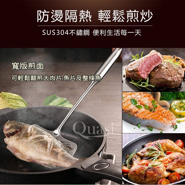 ●寬版煎面,翻煎大片肉片.魚片.整條魚等,不易破碎,煎持完美,美味上桌