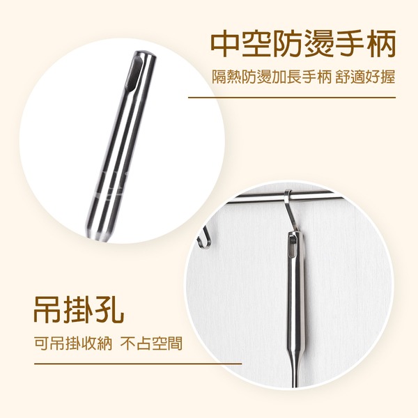 ●中空防燙手柄設計,好握舒適,吊掛孔收納,不占空間
