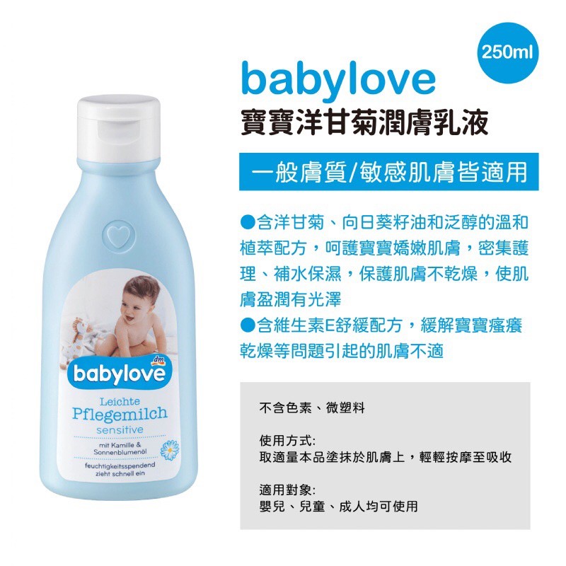 【商品名稱】德國 babylove 寶寶洋甘菊潤膚乳液 250ml