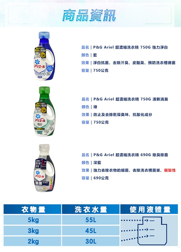P&G ARIEL 超濃縮洗衣精-藍色淨白